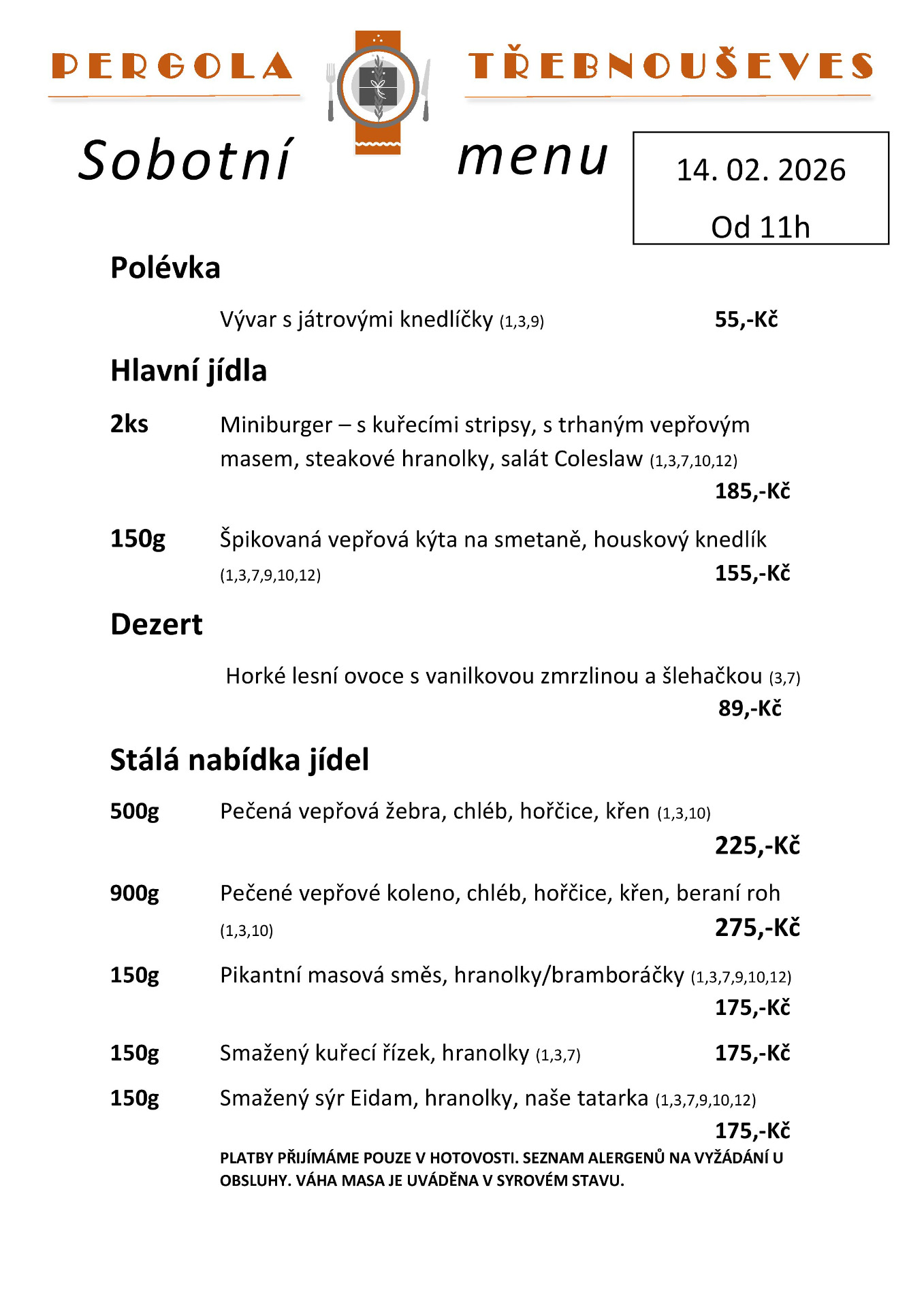 Pátek - Sobota: 11:00 - 22:00